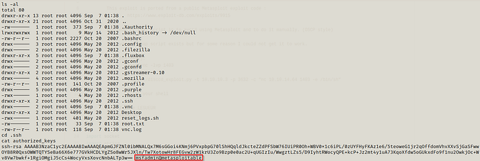 We try to find a way for privilege escalation and went to the .ssh folder, nothing useful as such but given that the key has msfadmin written that can be an indication that this key can be vulnerable to CVE-2008–0166, where the random number generator in OpenSSL broke for a period of time causing lots of thing, including some SSH keys, to be brute forcable from the public key.